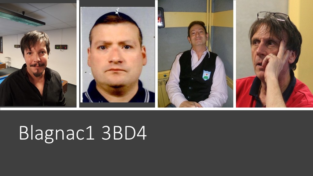 L'équipe Blagnac1 de 3 Bandes division 4 a finit première de la 1/2 finale de Ligue elle est donc qualifiée pour la Final de Ligue Division 4, bravo messieurs: JJ ROY, A.BECKER, D.VERGNES, P.FAVARO.